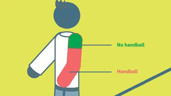 - Ręka musi znajdować się w nienaturalnej pozycji lub powiększać zarys ciała, aby mogła być uznana za przewinienie.